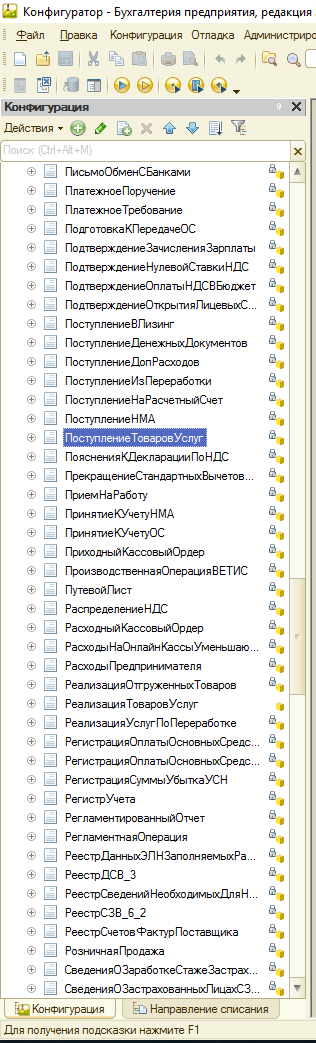 Пример с кодом для документа “Поступление товаров и услуг” ниже: